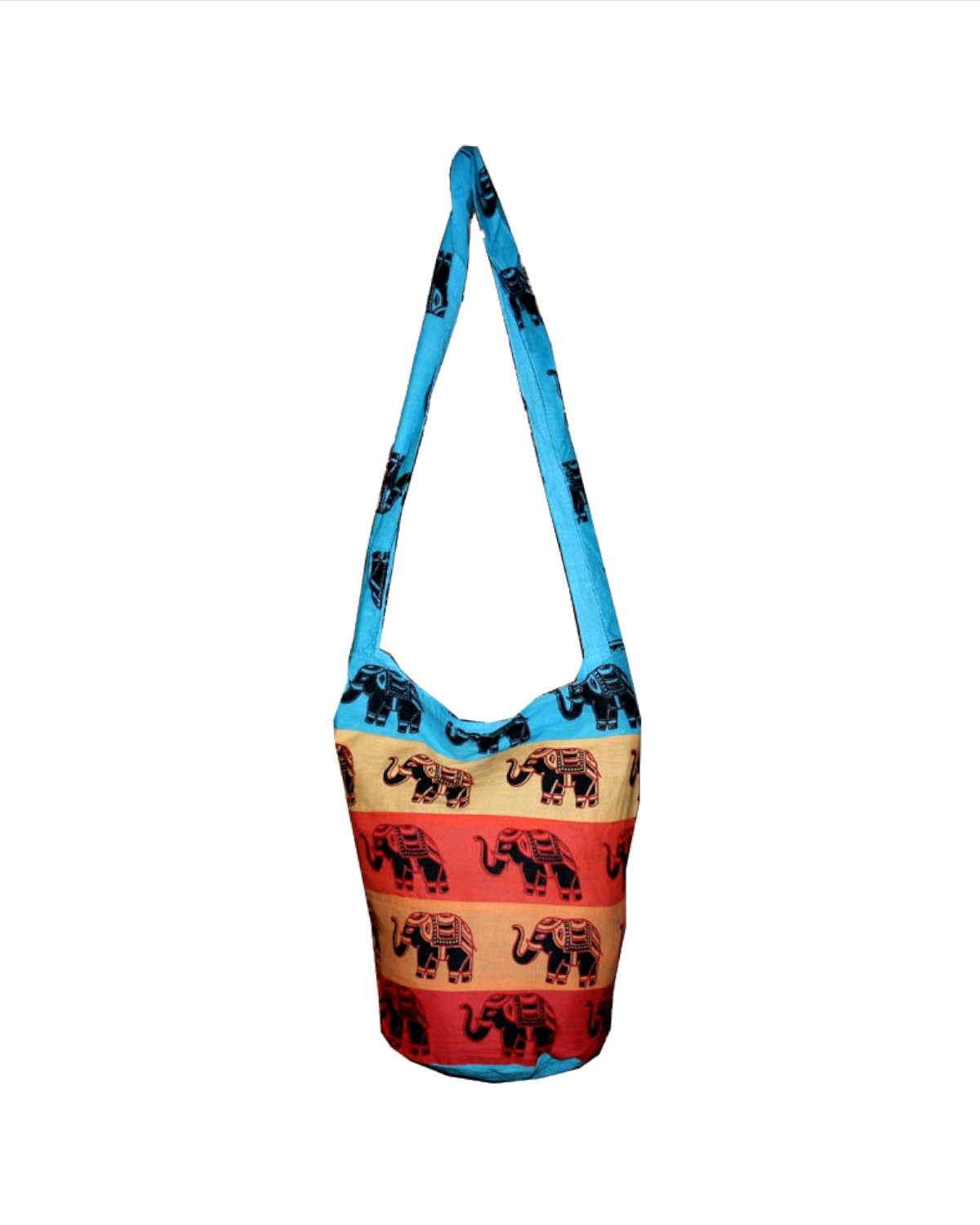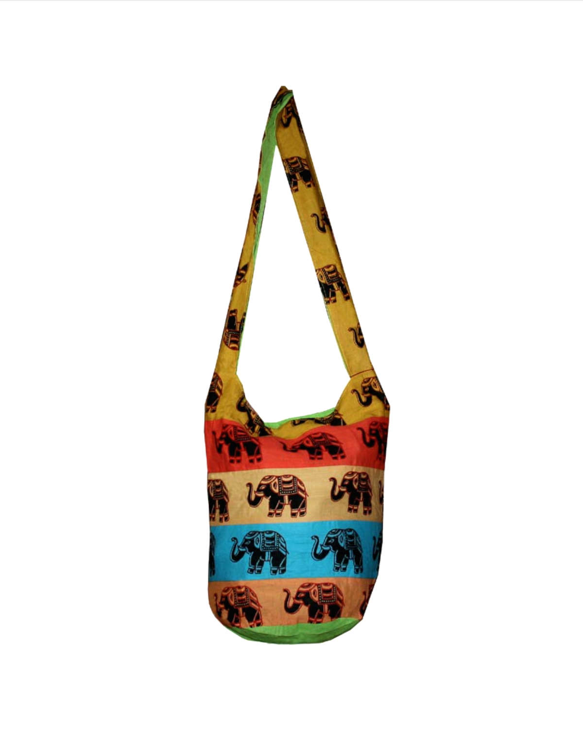 BORSA MONACO TIBETANO CON ELEFANTI SU BANDE COLORATE