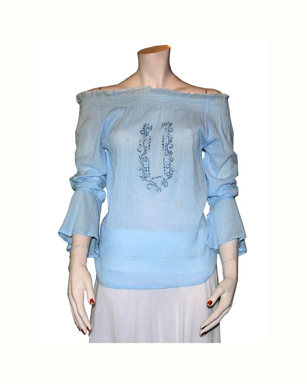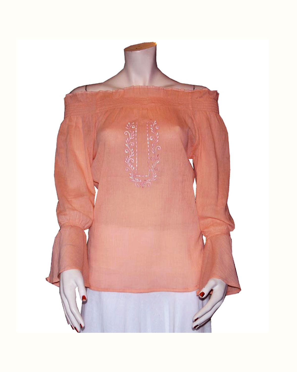 Deliziose camice realizzate in cotone crepettato da sarti nepalesi, con collo elastico da far scendere sulle spalle, maniche a ventaglio, abbellite da ricami colore su colore. Disponibili in colori assortiti nelle taglie M, L e XL.