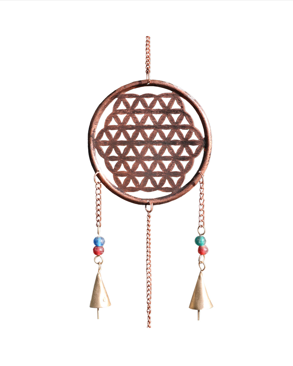 CAMPANA DEL VENTO IN RAME ANTICHIZZATO FIORE DELLA VITA A CASCATA