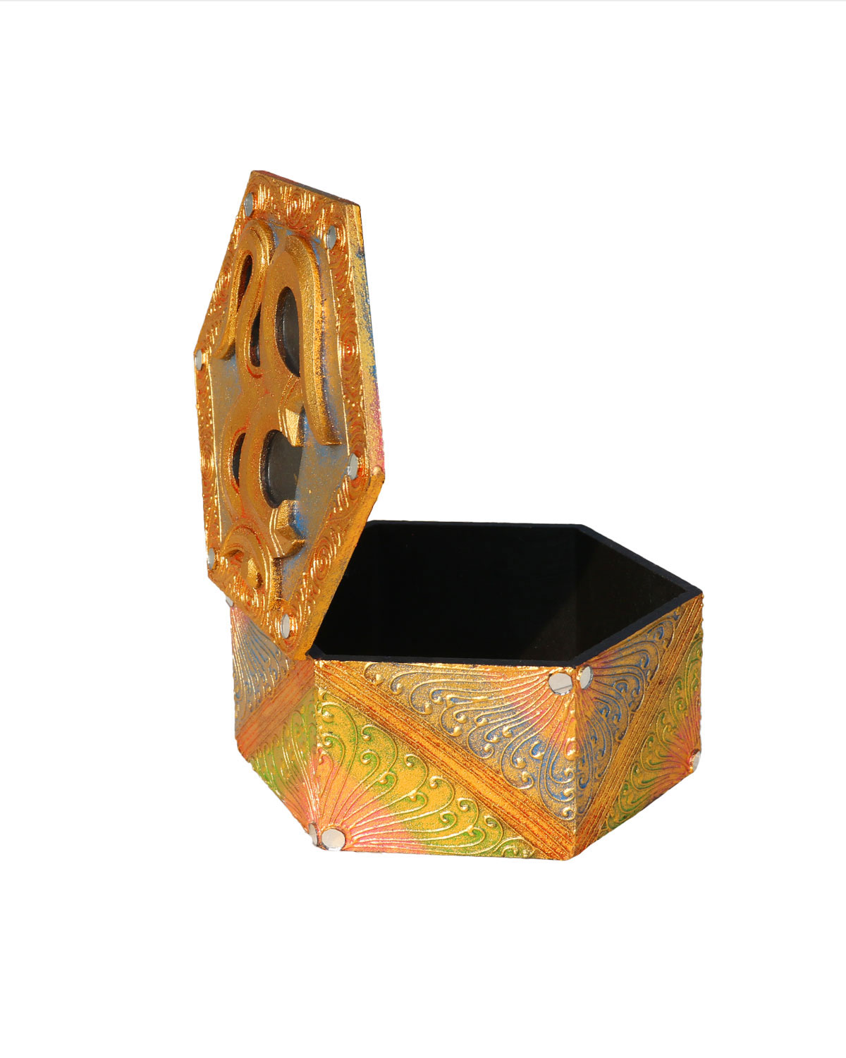 SCATOLA ESAGONALE MEDIA CON OM DORATE