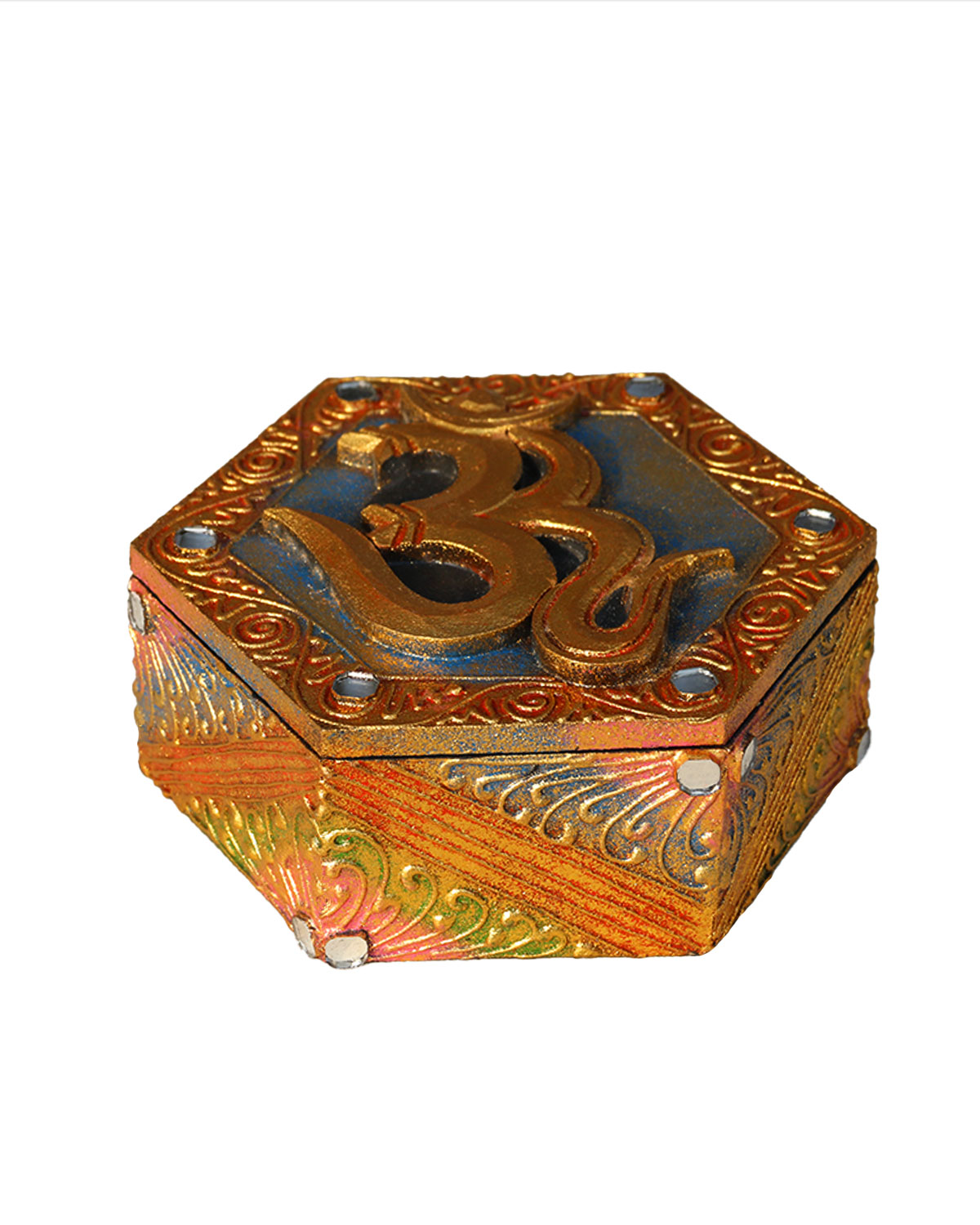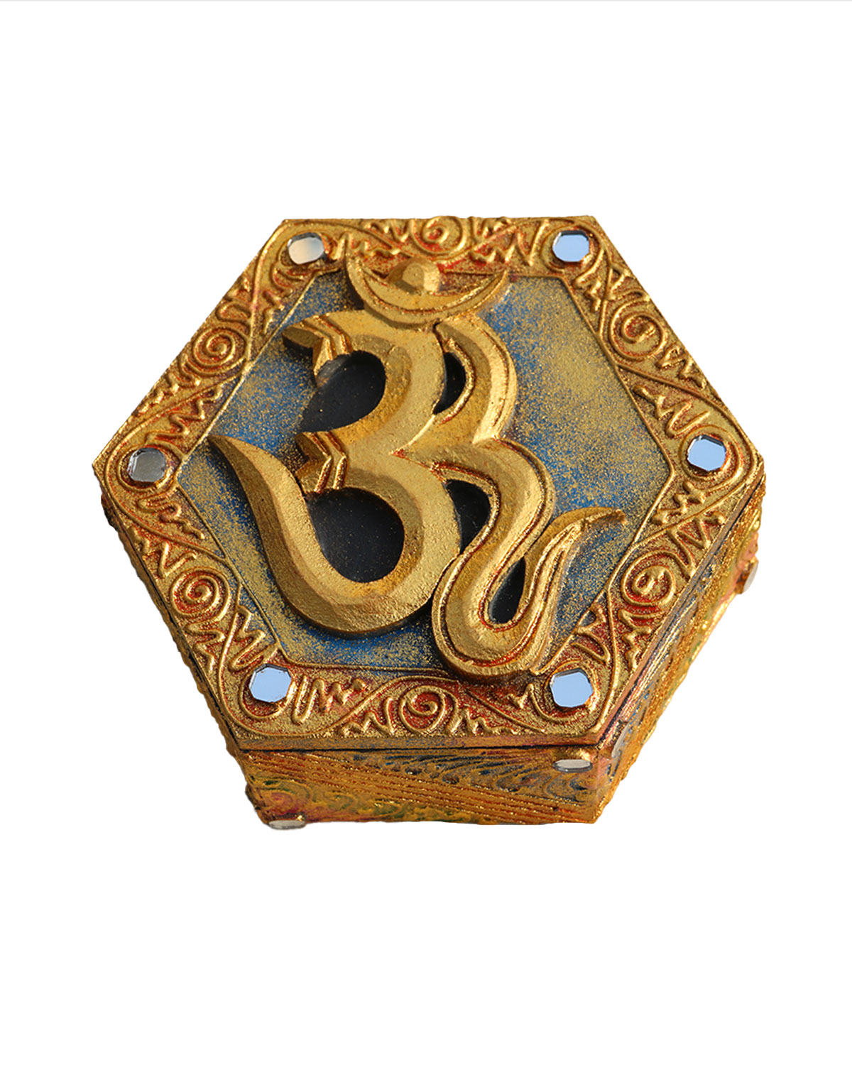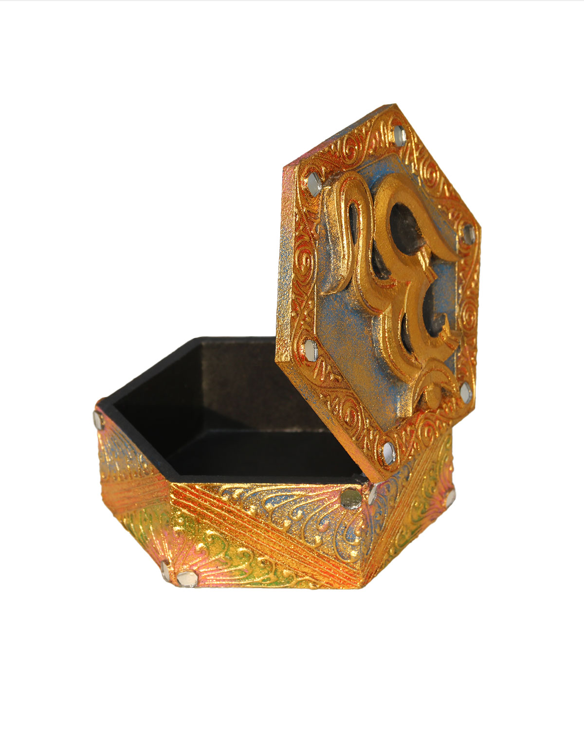 SCATOLA ESAGONALE PICCOLA CON OM DORATE