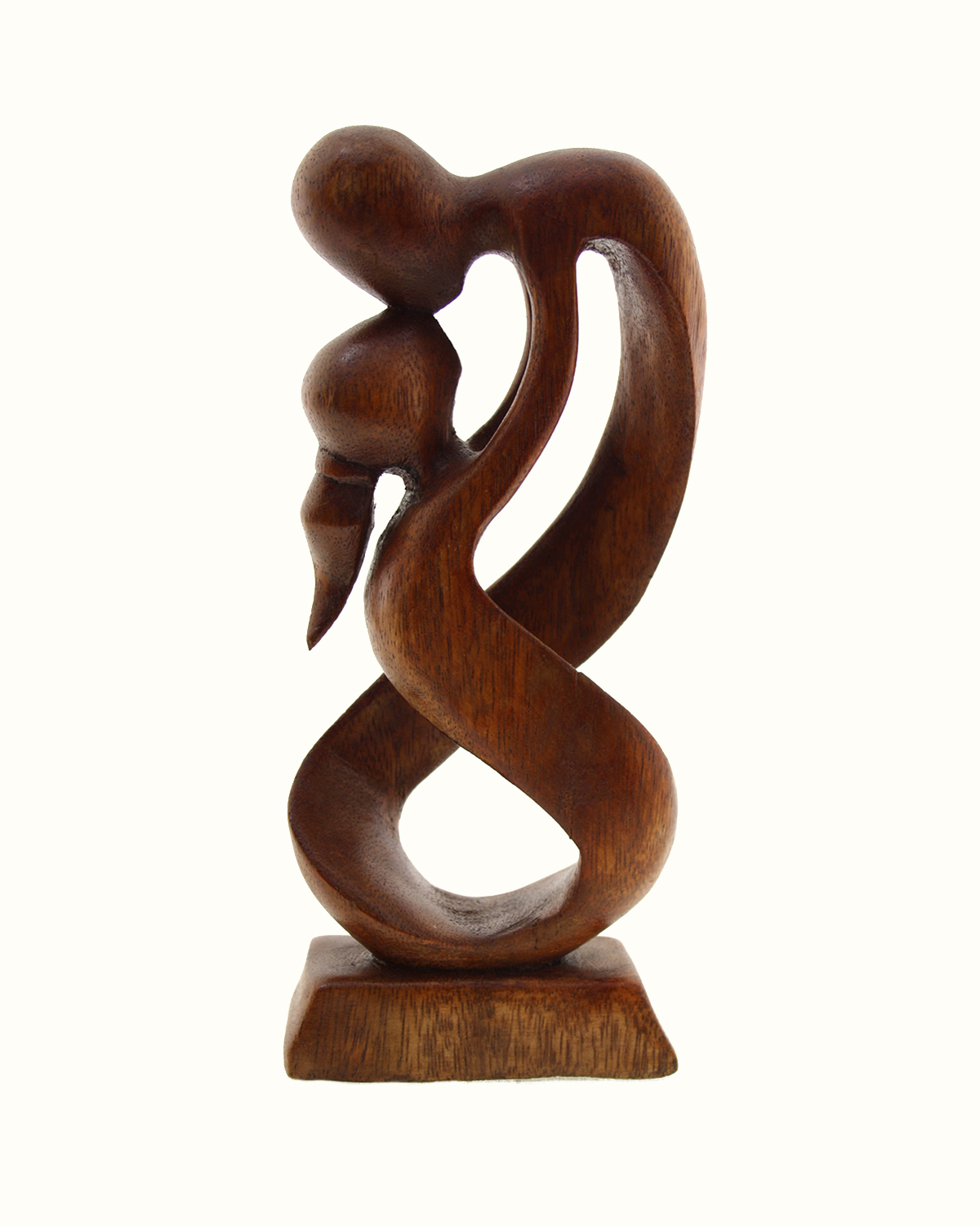 Romantiche statuine realizzate in legno esotico pregiato, intagliate a mano da artigiani indonesiani. La finitura , sempre manuale è lucida o semilucida. Simboleggiano l’amore e l’armonia di coppia. Dolci miniature rappresentano il bacio tra uomo e donna, l’unione cosmica tra i 2 sessi, la felicità  celeste. Ideali come regalo tra innamorati o come bomboniera nelle ricorrenze più dolci della vita. Disponibili color noce medio con finitura a gomma lacca o a cera. Misure: cm 10 x 3,5 x h 20 circa.