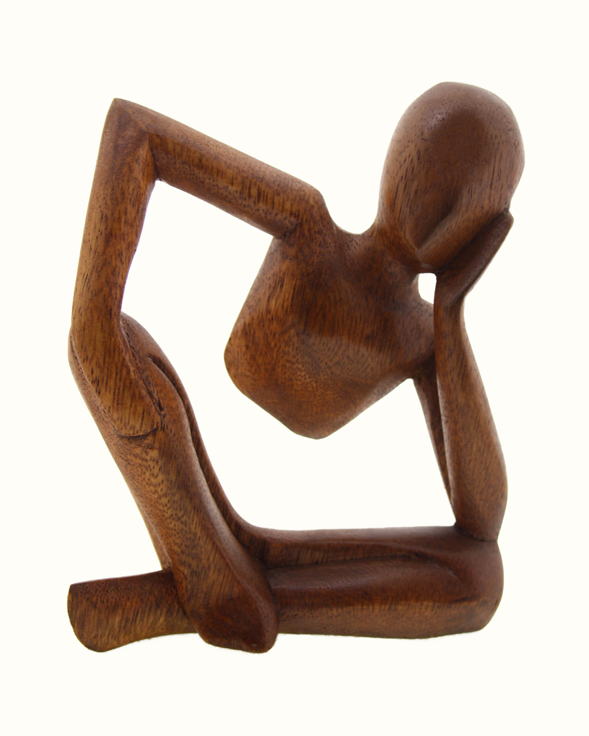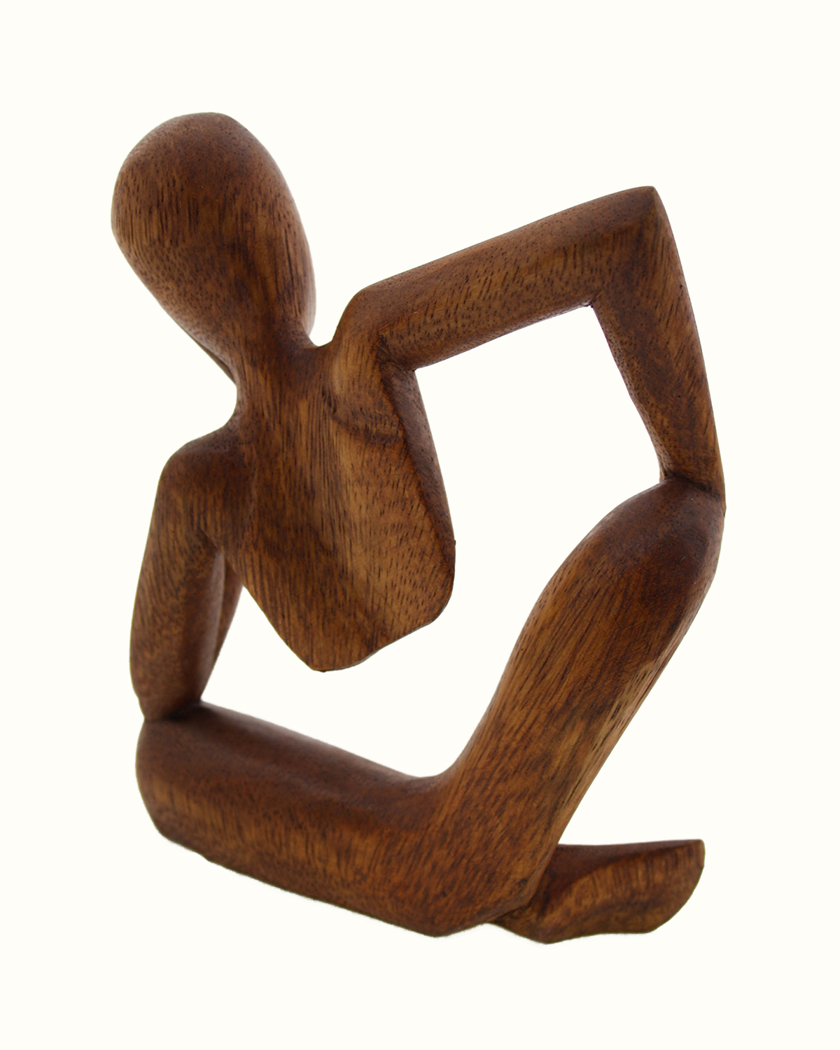 Realizzati artigianalmente in legno esotico pregiato, intagliati a mano, disponibili color noce medio, con finitura a gommalacca naturale. I pensatori simboleggiano la forza del pensiero. Raffigurazione attuale, che si rifa’ alla celebre scultura di Rodin, il pensatore moderno, dalla portata simbolica universale, è il simbolo dell’ essere umano nudo, che medita sul suo destino e prende matura consapevolezza dei dolori che lo attendono. Il pensatore etnico è entrato nell’ immaginario collettivo come icona dell’ attivita intellettuale. Misure: cm 13 x 3,5 x h 18.