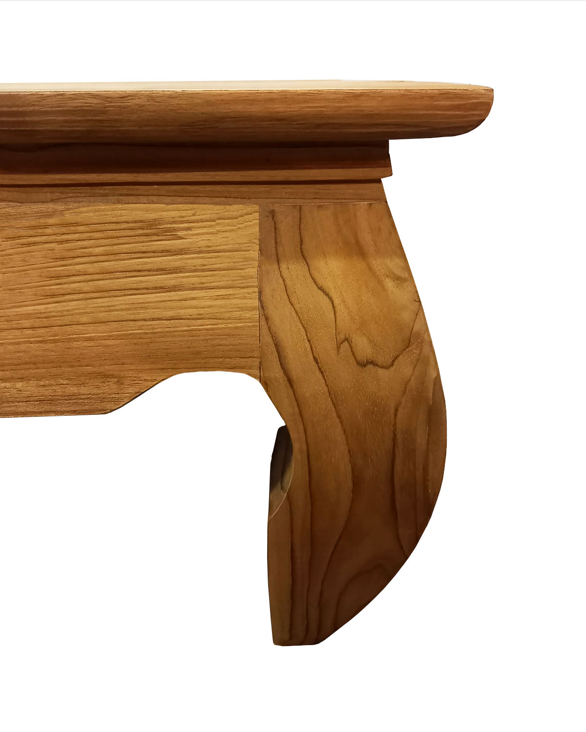 Originale e imponente tavolo realizzato da falegnami indonesiani in legno di teak massello con tecniche artigianali. Dalla caratteristica forma detta opium table si presenta come tavolo basso con gambe arrotondate e sagomate.Bello per arredare sale , studi, scuole yoga e centri olistici a cui regala un sensibile tocco etnico. Disponibili color teak chiaro. Misure: lunghezza cm 150, profondità cm 80, altezza cm 38, chilogrammi 32 circa.